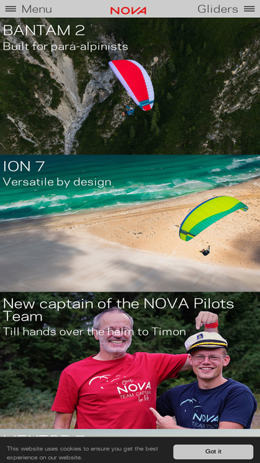 100%since 1989 nova has been producing innovative performance paragliders. we are a leading manufacturer that offers high gradet wings.