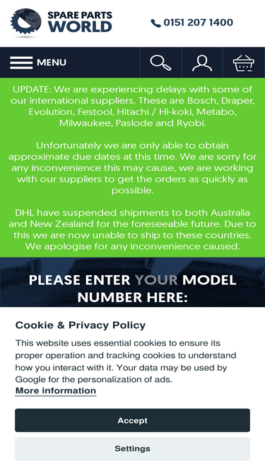 100%Over 1 million spare parts and accessories - Power Tools spares, Lawn Mower spares from over 50 manufacturers - Black & Decker spares, Bosch spares, DeWalt spares, Dremel spares and much more.