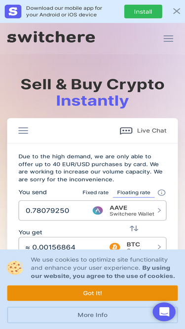 93%Serviços de troca de criptografia seguros, licenciados e confiáveis estão à sua disposição. Compre, venda ou troque todas as principais moedas do jeito que você quiser e receba descontos incríveis (até 45%) na taxa de serviço. Vários métodos de pagamento, interface amigável, entrega instantânea, processamento seguro de transações e programa de afiliados com os melhores pagamentos.