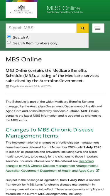 52%mbs online contains the medicare benefits schedule (mbs), a listing of the medicare services subsidised by the australian government.