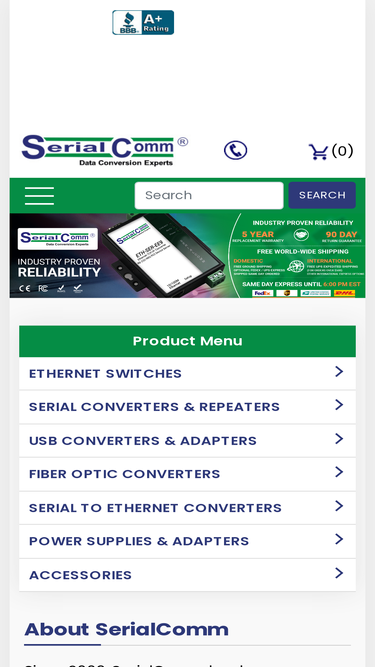 79%serialcomm's industry proven reliable serial, usb & fiber optic converters, free shipping and 5-year replacement warranty