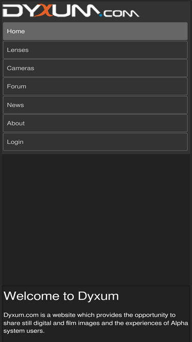 85%dyxum is a website devoted to alpha system (minolta / sony a-mount and e-mount cameras) with lens and camera database and active forum community