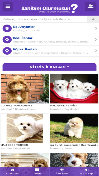 76%Türkiye'nin en güvenilir köpek, kedi, evcil hayvan ilan sitesi Nettepet'te aradığınız evcil arkadaşı bulun. Yavru ve yetişkin köpek ilanları için tıklayın!