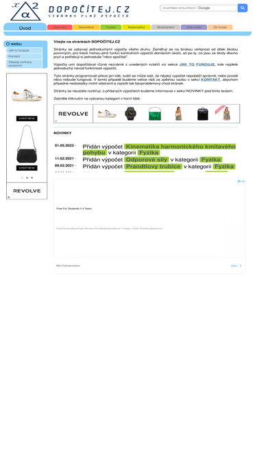 85%vyzkoušejte on-line výpočty všeho druhu, převody jednotek, dopočítávání různých nezmámých podle zadání, z oblasti geometrie, fyziky, matematiky, strojírenstvní, auto-moto a ze života. praktický on-line pomocník jak v běžné praxi tak při tvorbě domácích úkolů.