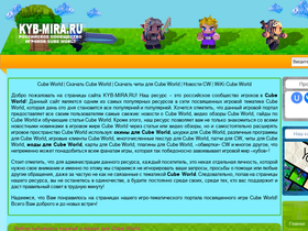 100%наш тематическо-игровой ресурс посвященный игре cube world позволит вам узнать много нового о данной игре и позволит попробовать в неё поиграть. кроме этого на страницах нашего игрового сайта вы обязательно сможете найти и скачать: читы, моды, клиент cube world, посмотреть видео обзоры, гады и конечно же прочитать стать которые непосредственно имеют отношение к игре.