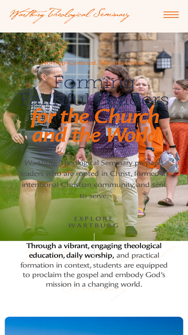 85%Wartburg Seminary embodies God’s mission by stewarding resources for engaging, equipping, and sending leaders who interpret, proclaim and live the gospel of Jesus Christ for a world created for communion with God and in need of personal and social