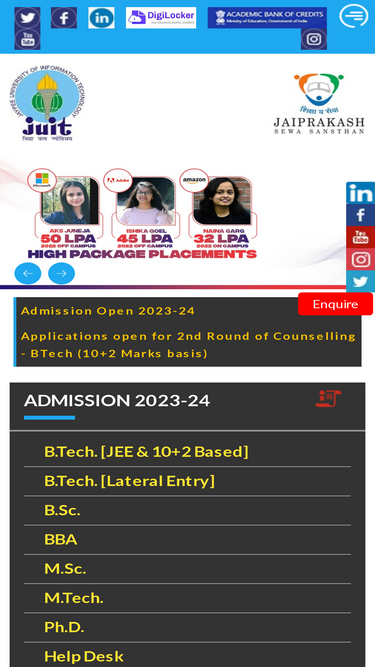 Los otros cinco competidores de la lista de los 10 mejores son juit.ac.in, admitx.in, techvidya.education, learnonline.co.in y sibstc.edu.in.