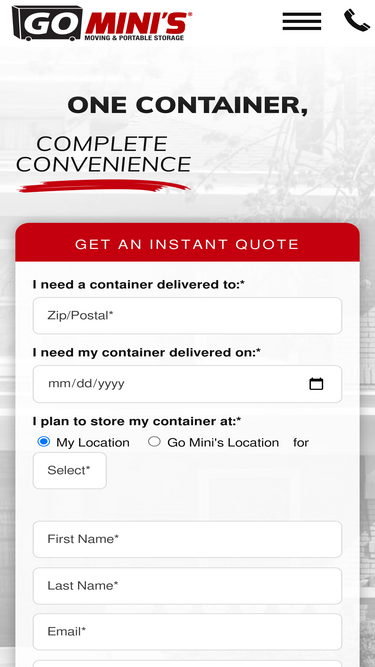 69%Go Mini's can bring one of our safe, portable storage containers right to your home or place of business, deliver it to your new location for you, and pick it up when you're done. No matter how much space you need, we have various sizes of storage containers for you to choose from.
