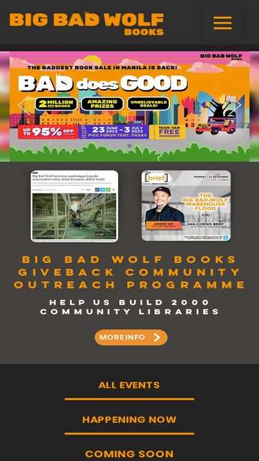 81%We're back! 🐺✨ From 25 July - 4 Aug 2024 The Big Bad Wolf is howling into Kuching with a monstrous selection of new and popular titles! ✨ Fantasy, fiction, romance, and more! We've got something for everyone at unbelievable prices.
