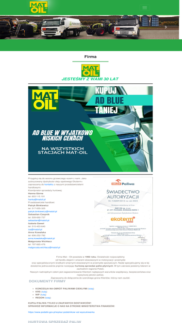 100%Firma MAT-OIL oferuje paliwa z dostawą. Dysponujemy flotą pojazdów wyposażonych w system dystrybucji paliwa. Olej napędowy z dostawą Olej grzewczy z dostawą. Mat-Oil zajmuje się hurtową sprzedażą oleju napędowego, oleju grzewczego Ekoterm Plus i benzyn.