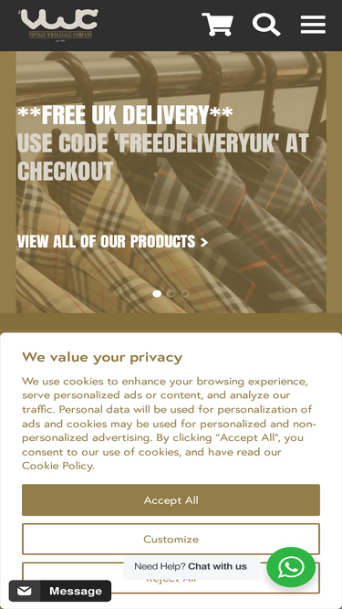 98%PRIVACY POLICY & PERSONAL INFORMATION Introduction Protection of your data is especially important to The Vintage Wholesale Company and we are committed to safeguarding the privacy of our website visitors, customers, employees and other parties using our services. The Data Protection Act 2018 controls how your pers