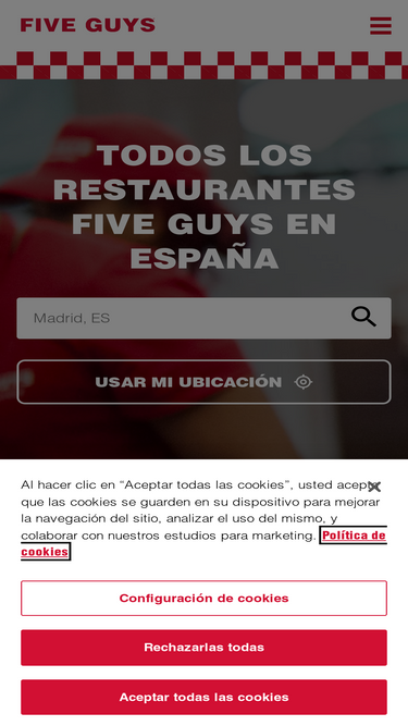 74%Visita tu Five Guys en Plaza Biribila en Bilbao para disfrutar de nuestras hamburguesas frescas cocinadas a la perfección. No olvides añadir nuestras famosas patatas fritas cortadas a mano y tu batido favorito.
