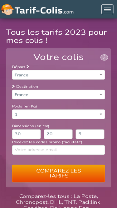 80%Comparez-les tous : La Poste, Chronopost, DHL, TNT, Packlink, Sendiroo, Delivengo Easy...