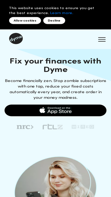 27%Weet je eigenlijk wel wat je elke maand kwijt bent aan vaste lasten? Met Dyme kom je er direct achter. Wij importeren je terugkerende kosten veilig en snel uit je bankafschriften en plaatsten ze in één helder overzicht.
