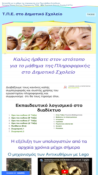 Καλ ώς ήρθατε στον ιστότοπο για το μάθημα της Πληροφορικής στο Δημοτικό Σχολείο