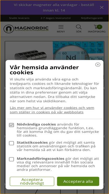 100%Allt i magneter online: kylmagneter, starka neodymmagneter, ferritmagneter och mycket mer. Och så levererar vi alla dagar i Sverige.