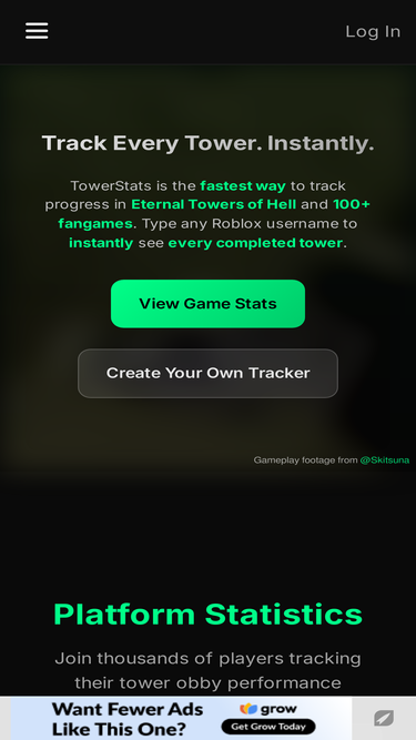 63%TowerStats is a fast, community-built analytics tool for tower-styled obby games. Created by TheHaloDeveloper, it lets players instantly look up stats for any tower or user, including completions, difficulties, and timestamps. Whether you're grinding for leaderboards or just tracking your progress, TowerStats makes it easy to see where you stand.