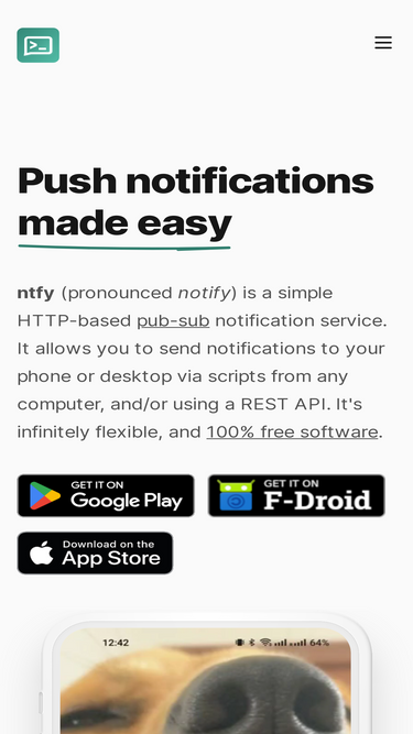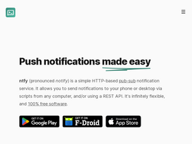 ntfy lets you send push notifications via scripts from any computer or phone. Made with ❤ by Philipp C. Heckel, Apache License 2.0, source at https://heckel.io/ntfy.