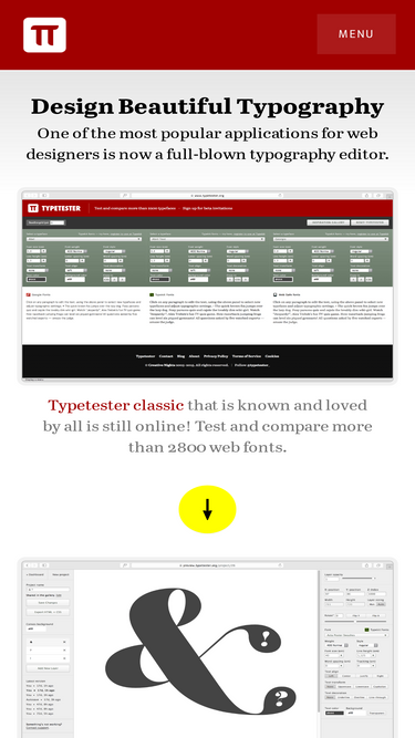 98%typetester is an online tool for designing with web fonts.