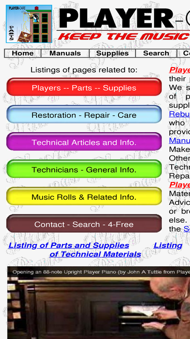 100%player piano parts, supplies, and technical manuals. player-care will help you we also offer free technical information, lists of player piano technicians, and we sell player piano parts and rebuilding supplies.
