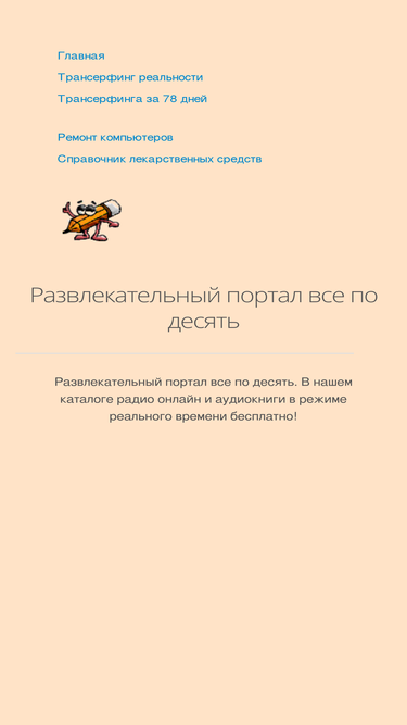 развлекательный портал все по десять. слушать радио онлайн на нашем портале просто и бесплатно! читать книги онлайн и слушать трансерфинг реальности - развлекательный портал