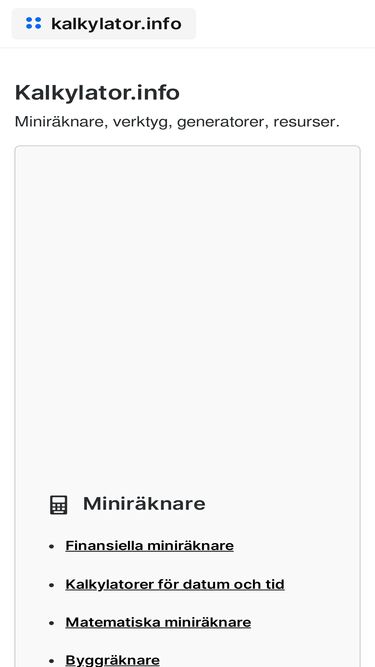 Räkna ut allt från BMI, IQ till bolånekostnader på KalkyleraMera.se. Här hittar du alla sorters kalkyler och beräkningar.