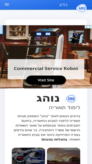 87%נוהג לימוד תאוריה בחינם. האתר והאפליקציה המובילים ללימוד תאוריה בארץ. האתר מכיל את כל חומרי הלמידה והמבחנים העדכניים ביותר. הרשמו לנוהג ותעברו בקלות את מבחן התאוריה.
