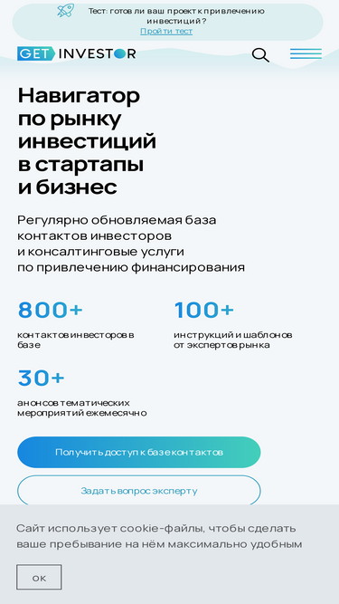 85%Заполните бесплатную форму для регистрации стартапа в базе. Если вы ищете инвестиции, зарегистрируйте ваш стартап, и мы отправим информацию о вас фокусным инвесторам