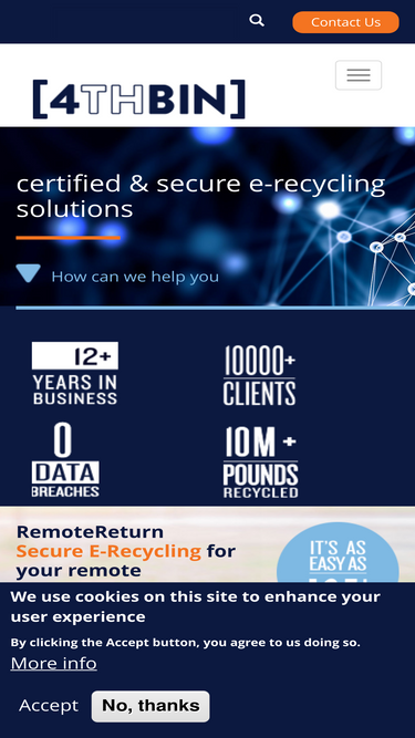 87%4thbin offers certified & secure e-recycling solutions that help businesses save time, resources & money. contact us to get started with a customized solution.