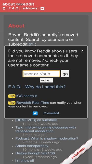 74%reveddit reveals content secretly removed from your reddit account.