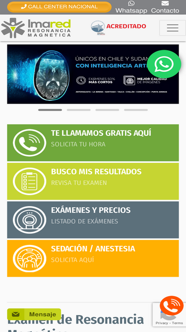 85%somos imared el centro de resonancia magnética más moderno de chile y primeros en sudamérica con inteligencia artificial, nuestros exámenes son de corta duración y realizamos la entrega en un período de 48 horas hábiles. exámenes de alta precisión 50% mejor calidad de la imagen y contamos con médicos radiólogos informantes altamente calificados. estamos a lo largo de chile y atendemos con fonasa, isapres y particular. agenda tu hora con nosotros llamando al 600 771 8090