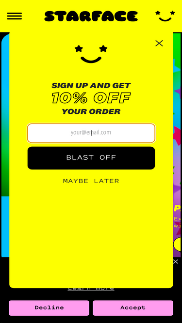 86%Reach for the stars and become a Starface Rewards Member! Earn pts and get VIP access to exclusive offers & discounts when you shop.