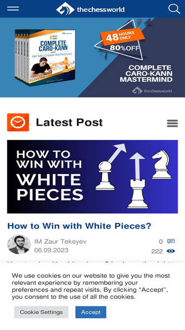 82%TheChessWorld offers many articles and lessons that will help you to learn chess and improve the skills of the game of chess.