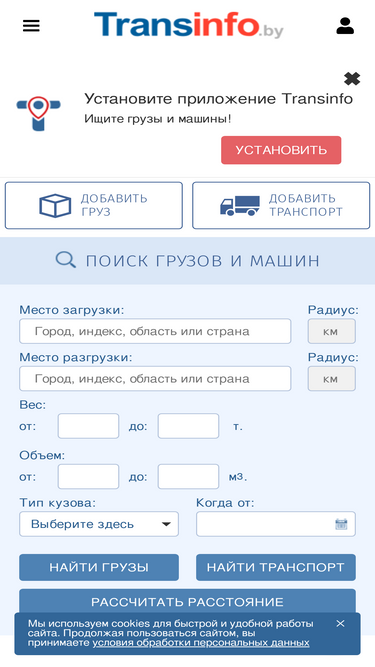 81%белорусский портал грузоперевозок transinfo.by предлагает бесплатные сервисы в области грузоперевозок: международные, внутренние и внутригородские перевозки, грузоперевозки по стране и за рубежом, срочные грузы, попутный и постоянный транспорт по странам.