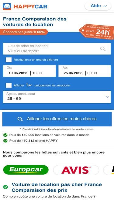 85%réservez votre voiture de location france directement en ligne ✅ large choix de véhicules & utilitaires ✅ meilleurs tarifs ➤ happycar