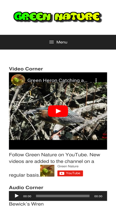 63%The video corner presents a series of bird video clips. You can also follow Green Nature on YouTube. Scroll down the page and discover additional Green Nature offerings. Animals Butterflies Birds Dragonflies Spiders Mushrooms Flowers Garden Tips Bees Wasps Frogs Lizards Turtles Snakes Ocean Animals