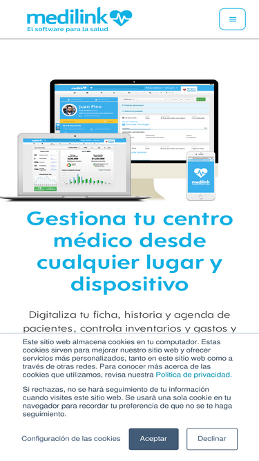 100%Medilink, Software Médico | Gestiona en línea centros de salud de cualquier especialidad • Agenda de pacientes • Ficha clínica digital y más.