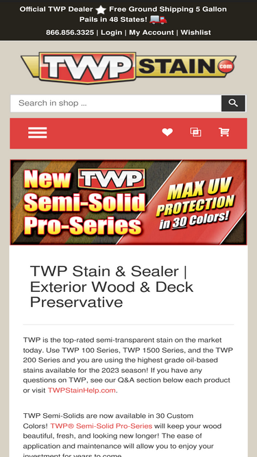 48%AVAILABLE TWP 1500 SERIES COLORS: 1500 CLEAR, 1501 CEDARTONE, 1502 REDWOOD, 1503 DARK OAK, 1504 BLACK WALNUT, 1511 CALIFORNIA REDWOOD, 1515 HONEYTONE, 1516 RUSTIC, 1520 PECAN, 1530 NATURAL CHOOSE STAIN COLOR IN DROPDOWN BELOW!