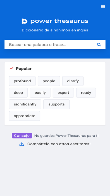 73%power thesaurus es un tesauro en línea gratuito, rápido, completo y fácil de seguir para escritores.