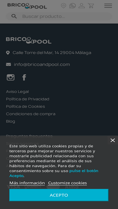 79%Información sobre uso de cookies: 1.1. BRICOANDPOOL le informa que, según el artículo 22 de la Ley de Servicios de la Sociedad de la Información y Comercio Electrónico, así como en el Considerando (30) RGPD informamos de que este sitio web utiliza cookies tanto propias como de terceros con diversas finalidades. 1.2. Un