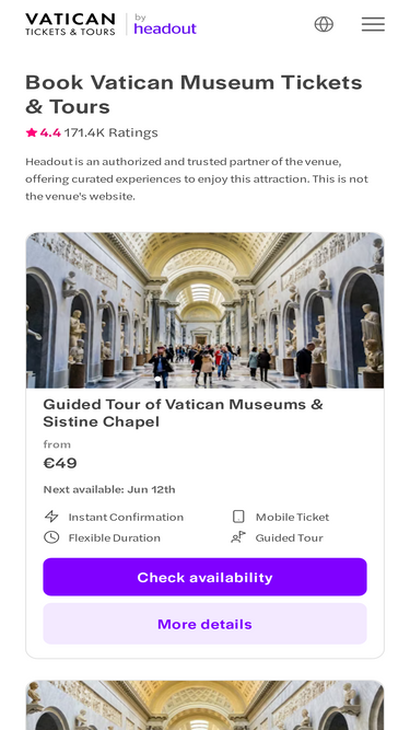 87%Besuchen Sie die Vatikanischen Museen, die Sixtinische Kapelle und die Kuppel des Petersdoms im Herzen der Vatikanstadt.