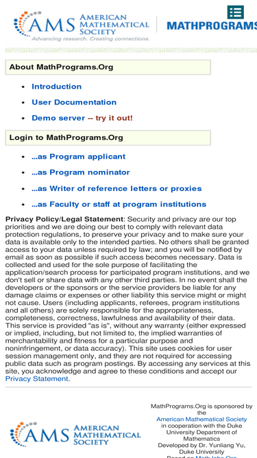 83%full service online program application site for mathematical institutions worldwide, offered by the american mathematical society (ams).