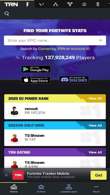 57%Detailed Fortnite Stats, Leaderboards, Fortnite Events, Creatives, Challenges and more!