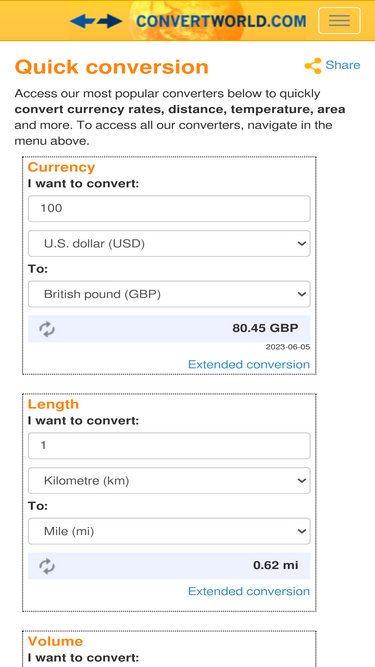 85%interactive calculators used for converting between currencies, weight, volume, mass, time, distance and more.