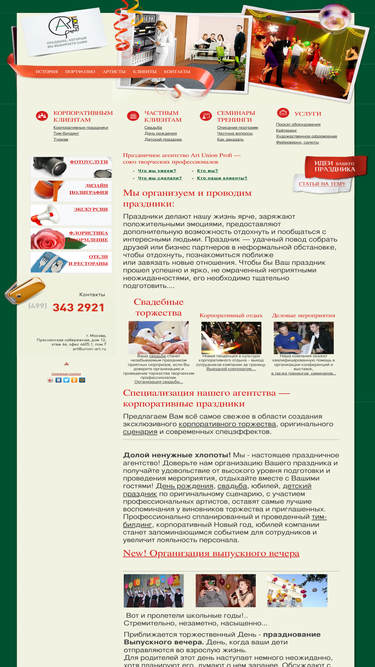 100%агентство art union profi - организация праздников и корпоративных мероприятий, кейтеринг, артисты на праздник, декорирование, флористика
