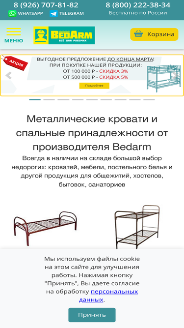 Производство металлических кроватей, корпусной мебели и текстиля для жилых и коммерческих помещений. Доставка по России! Позвоните нам: ☎️ 8 (800) 555-81-16.П