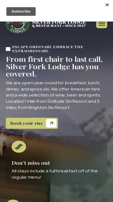 63%Silver Fork Lodge is a rustic alpine lodge with a full-service restaurant overlooking Honeycomb Canyon and Brighton and Solitude Ski Resorts. (801) 533-9977