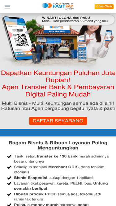 Buka bisnis layanan perbankan dan mini ATM dengan jadi Juragan Fastpay. Menyediakan setor tunai, tarik tunai dengan 147 bank di Indonesia. Daftar Disini.