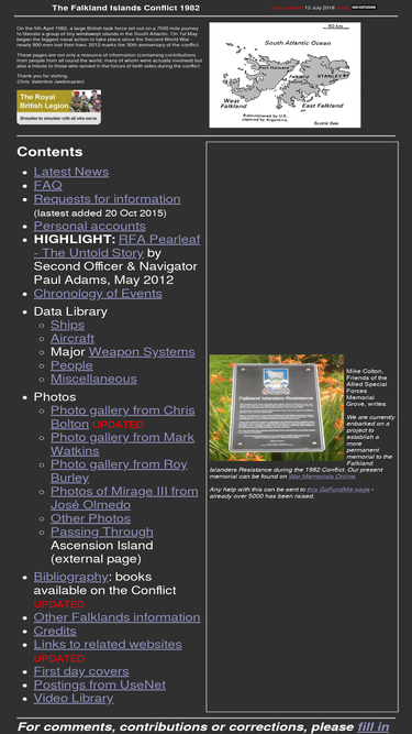 a tribute to the 1982 falklands conflict with contributions from veterans from around the world.