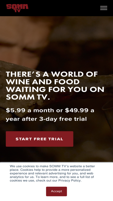 75%SOMM TV is a streaming service dedicated to the worlds of wine, food, travel, and hospitality. From the team behind the award-winning SOMM movies. SOMM TV speaks wine! Wine education. Wine learning. Wine movies. Wine entertainment. Wine documentaries. Napa Valley videos.